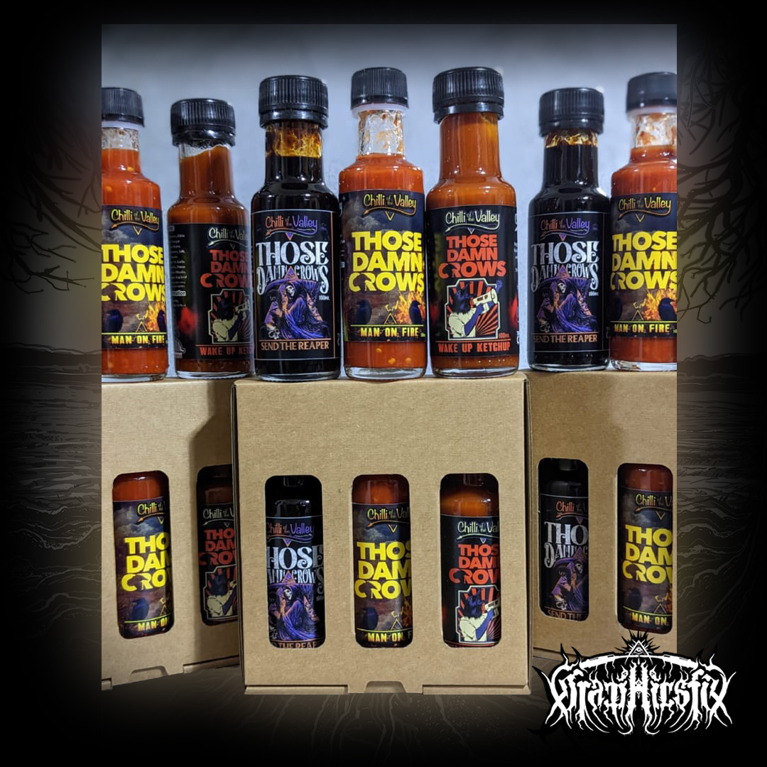 We have worked with bands all over the UK to create both custom and red label sauces in collaboration with bands like Party Cannon, Cage Fight and Those Damn Crows.